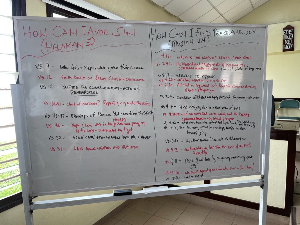 Here are some pictures from the conference. The individual pictures are during the virtual apartment walkthroughs as part of LaDawn’s instruction. Also included are the whiteboard results of several of the instructions as explained in the posts from the last two weeks. Pictures of missionaries doing role plays on questions of the soul are also included.
