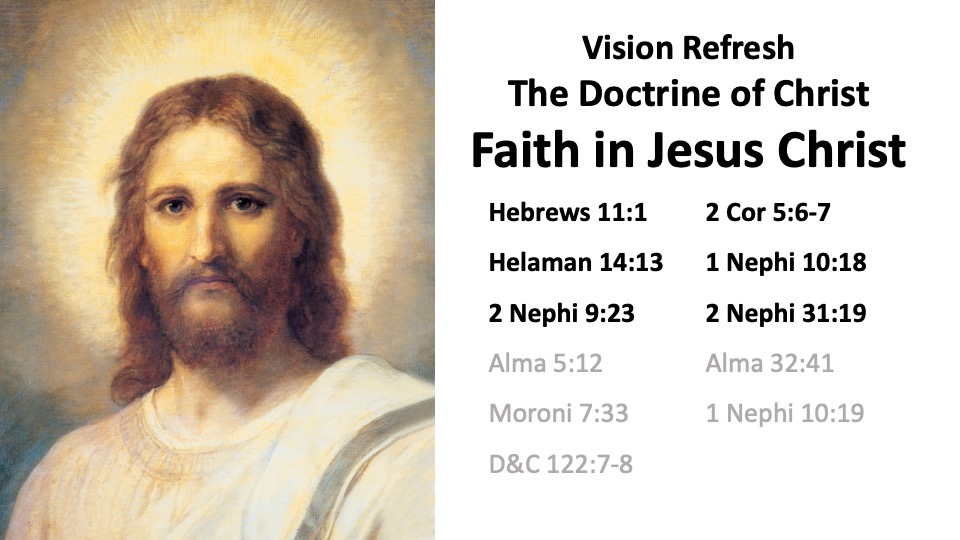- Vision Refresh. This round of conferences we are speaking about the Doctrine of Christ, beginning with Faith. We discussed 6 scriptures and had marvelous discussions about the evidences of our faith in Jesus Christ.