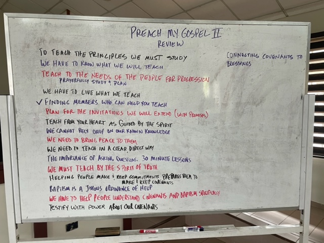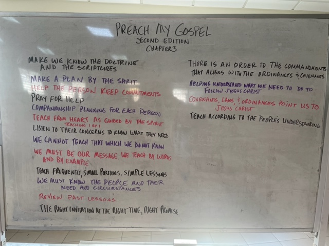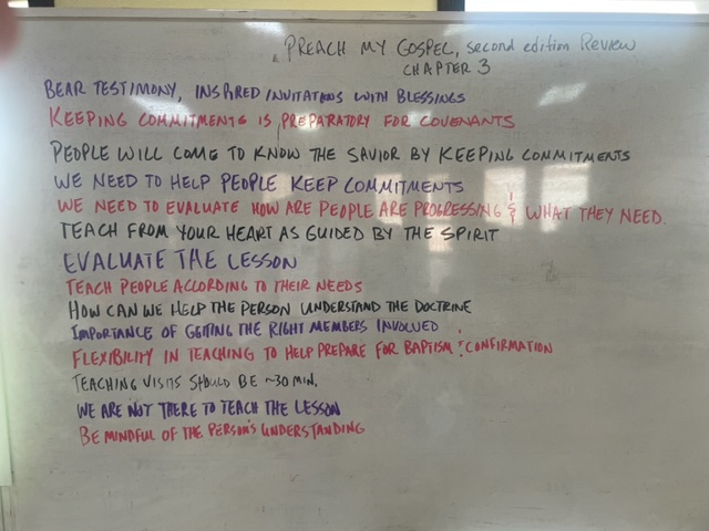 With these latest zone conferences, we did a review of Chapter 3 of Preach My Gospel, Second Edition. Each week we review a new chapter, so last week was Chapter 2 and this week Chapter 3. Here are the boards from all three conferences in the order we held them.