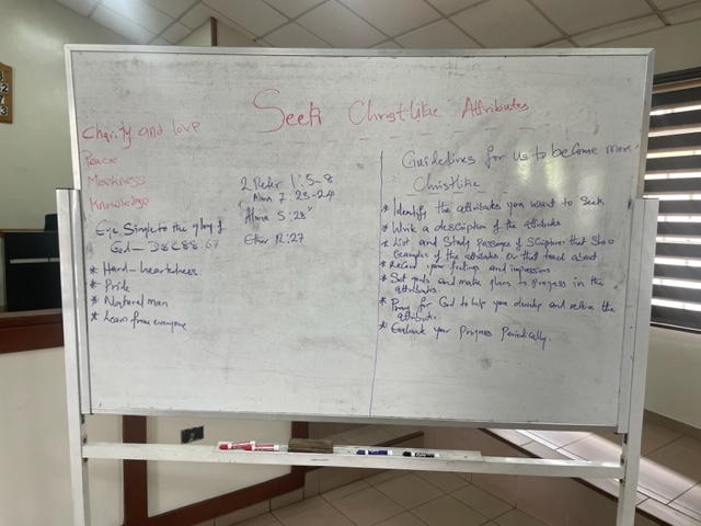 In the Wednesday zone conference with Bantama, Bibiani, and Obuasi, Sister Kekula and Sister Eme, the Sister Training Leaders, presented instruction on “Seeking Christlike Attributes” from Chapter 6. Another powerful instruction!
