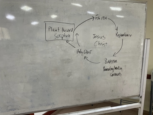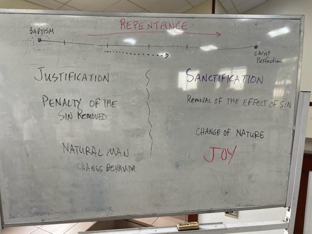 During the vision refresh, I added two new white board drawings to explain the importance of Faith in Jesus Christ. The first shows the iterative nature of the Doctrine of Christ that begins with Powerful Personal Study as the catalyst that grows our faith and then leads to repentance, baptism and the making and renewing of all covenants, and the sanctifying influence of the Holy Ghost. The second shows the continuum between Justification and Sanctification. We had an amazing discussion with the zones about how to know where we each are on that continuum and the things we need to do to progress.