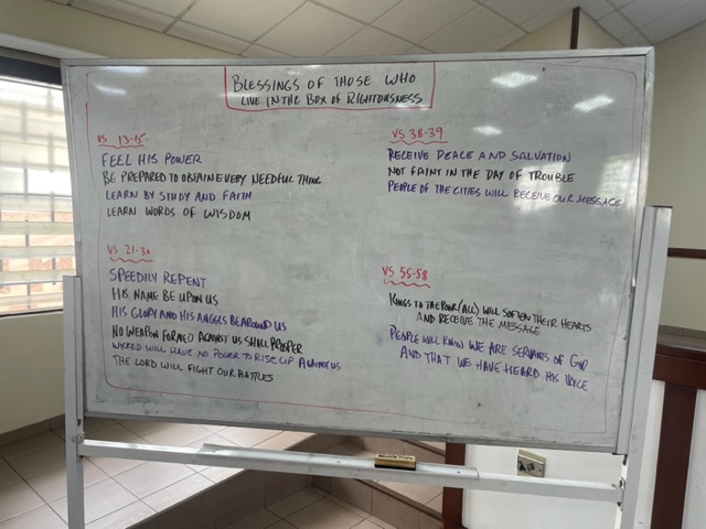 On Thursday, Sister Asantewaa and Sister Konoekor, the University Sister Training Leaders gave an instruction on “The Two Great Commandments” which comes primarily from the 4th lesson in Chapter 3 on Becoming a Disciple of Jesus Christ as well as being mentioned in Chapter 1. Well done Sisters! (Unfortunately I forgot to take a picture of them presenting.)