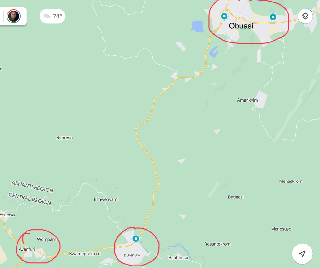 Ayanfuri is about 30 minutes (14 km) west of Dunkwa. The time to get there tells you something about the quality of the roads. We think the Group will grow quickly as there is already a small group of faithful Saints living there.