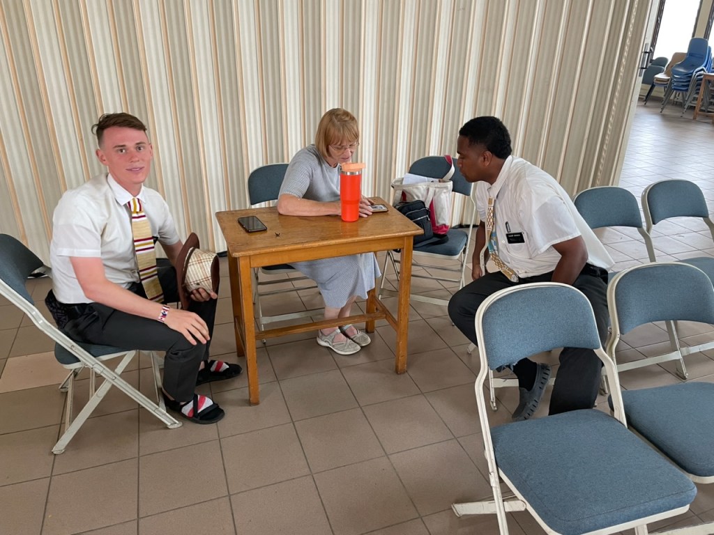 On Sunday we attended church in the Obuasi 2nd branch. It was fast and testimony meeting and while nearly everyone was there in time to partake of the sacrament (60 people), there were few who felt the Spirit encourage them to bear their testimony. At the end of the meeting I stood and shared my testimony and my concern that we need the members to “awake and arise” and come to Church prepared to bless others rather than just to be fed spiritually themselves. After the meeting I met with a member associated with a membership council we were to hold. As it turns out we decided to delay it for 3 weeks to gather a bit more information. Following the conclusion of that meeting, I interviewed two prospective missionaries. The first needs a bit more preparation and the second was very impressive. Mary Ayando is a 23 year old who was baptized in 2018, fell less active for some time and then was reactivated by Elder Dossia and Elder Lekopa, two Ghana Kumasi Missionaries. She has prepared herself well and is so ready to consecrate her life for 18 months to the gathering of Israel. I love interviews like this.