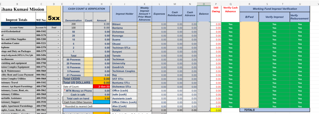 This past week I spent more time with Excel trying to figure out our working fund spreadsheet than any time since I retired from Shell. This thing is a monster. Over twenty worksheets, each with detailed reporting about the costs incurred across the mission. Over time it has been changed here and there so that whatever consistency used to exist has long since diminished. It is one thing to have a process and a spreadsheet that matches the process. It is another thing to have a spreadsheet that is disconnected from a process that changes with every Financial Secretary (it is difficult to hand down an unwritten process). And so this week, in an effort to help improve the handling of our working fund (which is not insignificant), I set out with the goal to figure out a process and then match the spreadsheet to that process. It is particularly difficult because we “close out” the working fund spreadsheet each week, but the process of submitting the expenses in the same week as the advances doesn’t always happen. To add additional worksheets to cover individuals with working fund balances (zone leaders, sister training leaders, senior couples, mission driver, facilities manager, etc.) is a significant effort. I probably spent 10 hours on it last week and it needs more this week. I am determined not to lose this battle with the software, but as of Monday evening, it is proving an apt competitor!