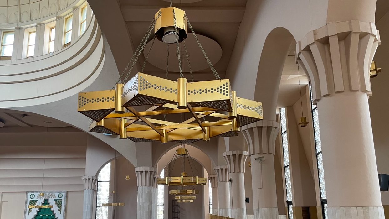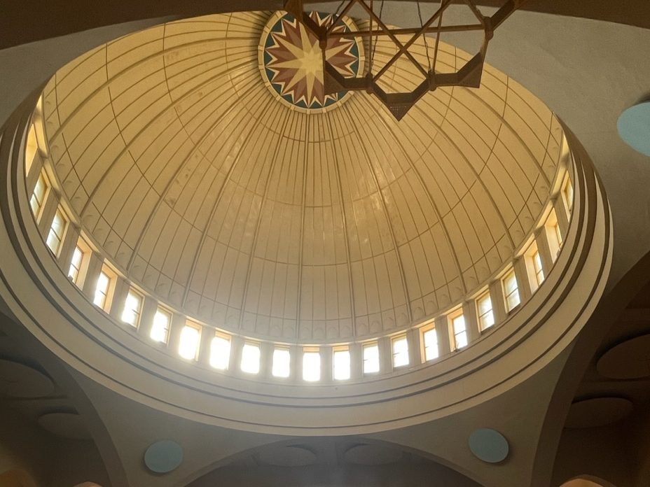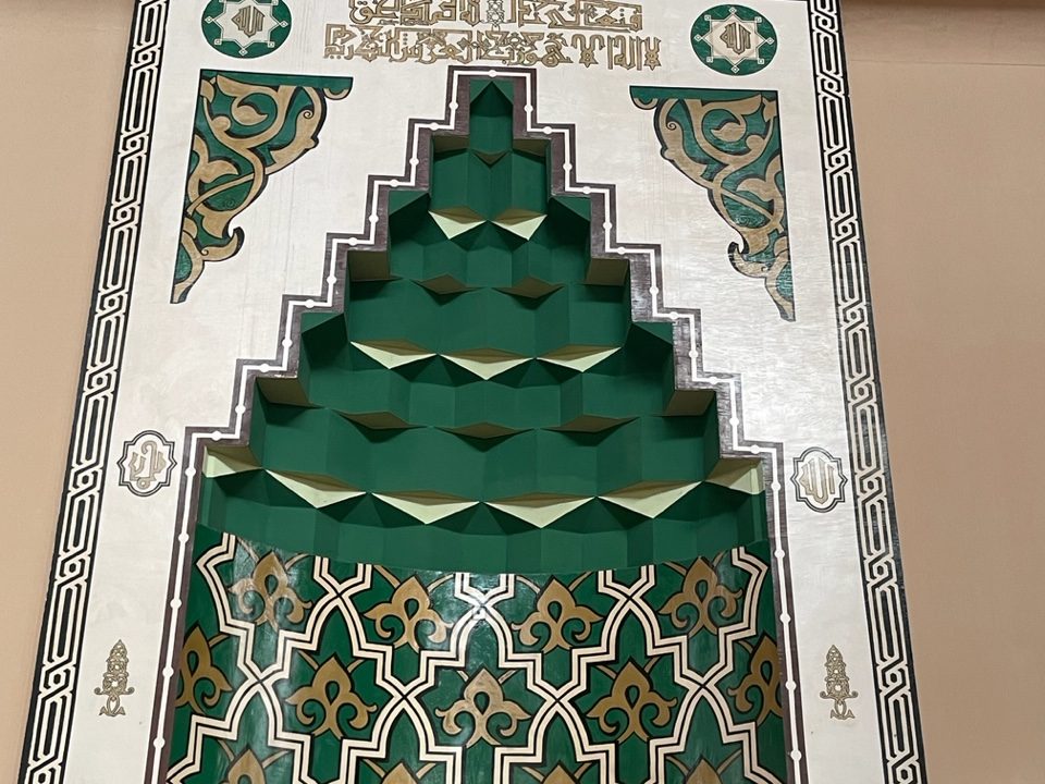 There is a symbol in Islam called the Khatim (consists of overlapping squares). It is everywhere inside the mosque and is displayed dominantly on the doors leading into the mosque. The light fixtures all carry this symbol. We found a website that explains 12 Islamic symbols. Here is what is said about the Khatim. “Drawn exactly like the Rub el Hizb, but without the small circle within the two squares, the Khatim symbol is known as the seal of the Prophet Muhammad. The term is generally interpreted to affirm the status of the Prophet Muhammad as the last real prophet of Islam and that there will be no other true prophet after him. This “finality” of Islam is a cornerstone to the Muslim faith and is also a part of the Shahada.” The Rub el Hizb symbol is closely related in geometry, but includes a small circle in the middle of the squares (see photo below). It was interesting that when standing directly under one of the fixtures, this symbol could be seen. Here is the explanation of the Rub el Hizb symbol from the same website: “The meaning of the Rub el Hizb symbol is that it marks the endings of passages in the Quran. The “Rub” part of the symbol means quarter or one-fourth while “Hizb” means a party or a group. The logic behind this is that the Quran is divided into 60 equally long portions, or Hizbs, and each Hizb is further divided into four Rubs.”