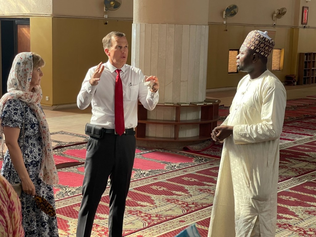 On Thursday afternoon after ending the last session, we made a trip to the Abuja Central Mosque. This is a huge building and from the outside quite stunning. We were given a tour guide to walk us through and were invited to take whatever pictures we wanted. The tour guide was Habib and because of the size of our group, it was difficult to hear everything that he said. Here are some pictures.