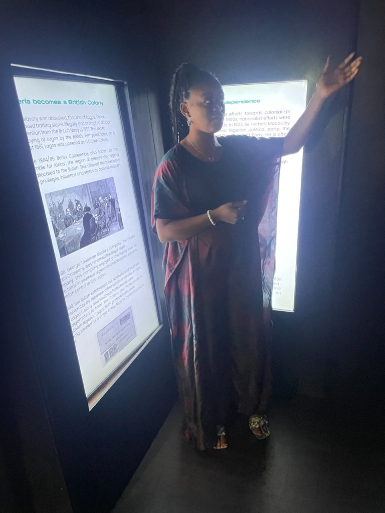 On Friday afternoon, we made another field trip, this one to the Discovery Museum. The largest “all-digital” museum in Nigeria. While it was interesting to learn the history of Nigeria, the digital part left us “wanting”. Museums are cool because of the history within its walls and the artifacts that support that history. While there were a few artifacts from the past (and present), there were not many. Our tour guide was Sarah and she did a great job explaining each of the exhibits. Here are some pictures: