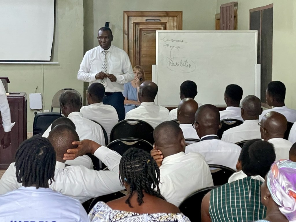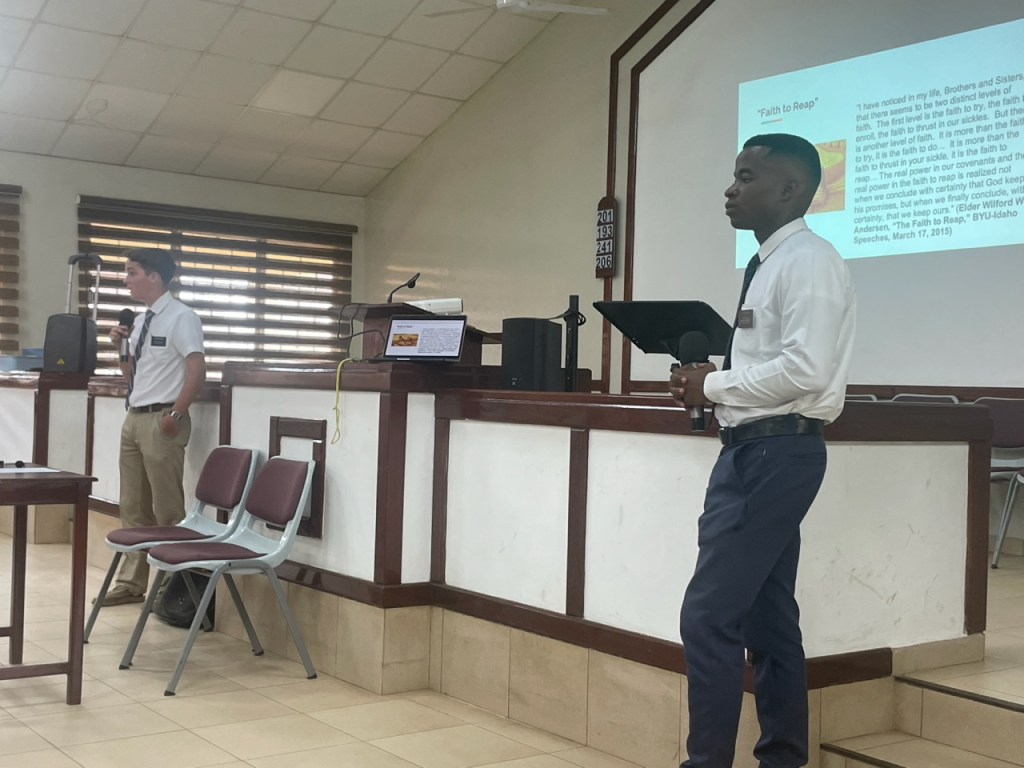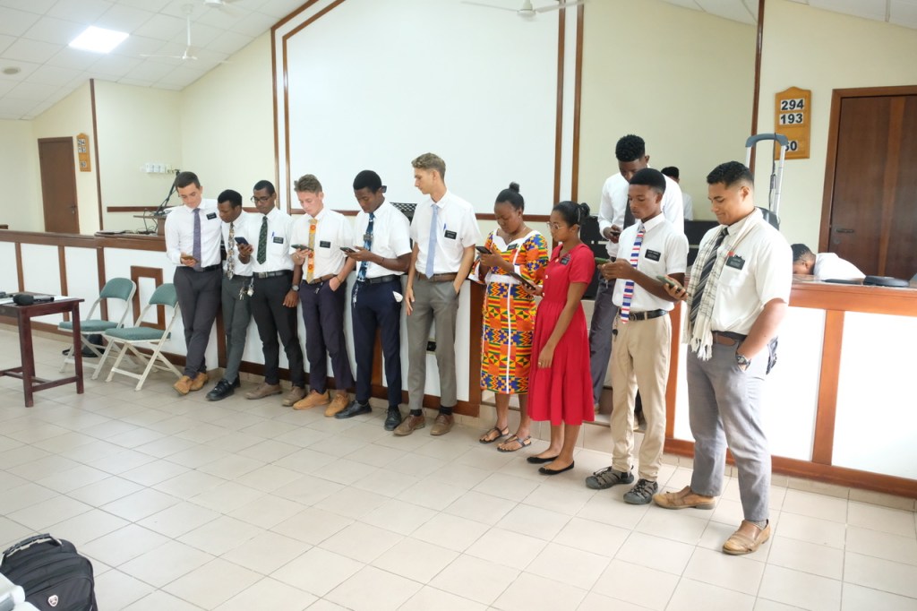 In the afternoon session, President Francis Arthur (1st Counselor in District Presidency) spoke about the Atonement of Jesus Christ and how it is the source and bedrock of repentance. There were then talks on the sacrament and loving one another by Br. & Sister Osei (it is unclear to me if they were married or from different families). LaDawn talked about spiritual preparation asking, “Are we doing all we can do to prepare for the Savior’s Second Coming?”. I then spoke about Justification and Sanctification. Elder Sosu spoke on the parable of the laborers and made this important statement, “When we think upon the things of the world, we squeeze out space for the things of God. If we are not choosing the things of God, we are choosing the things of the world.” He referenced Lot’s wife in Genesis 19.