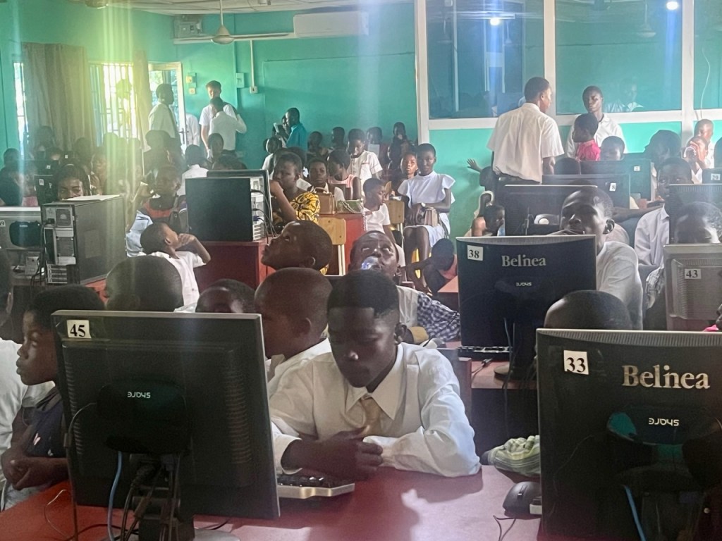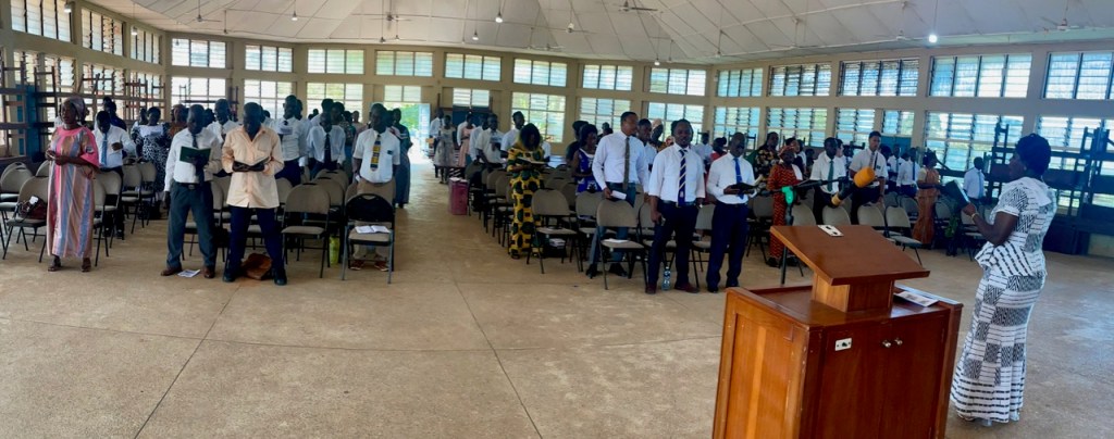 On Sunday, we again met in the auditorium of the Bibiani Senior High School. This is actually a quite nice facility. We held both the general and adult sessions on Sunday. We also held a youth testimony meeting during the Adult session. The school was kind enough to allow us to use their computer lab for the testimony meeting. President Edmund Obeng, my first counselor, conducted the meeting while the District Presidency, Elder Sosu, and LaDawn and I attended the adult session.