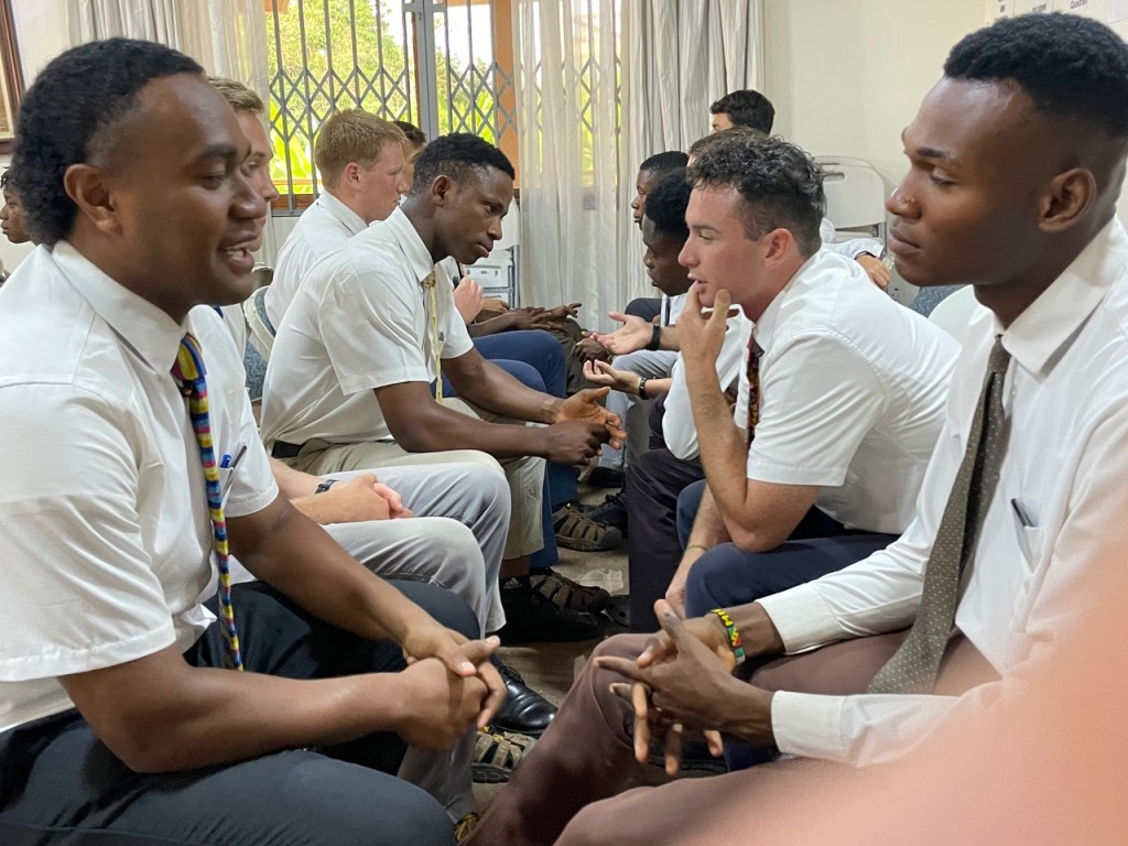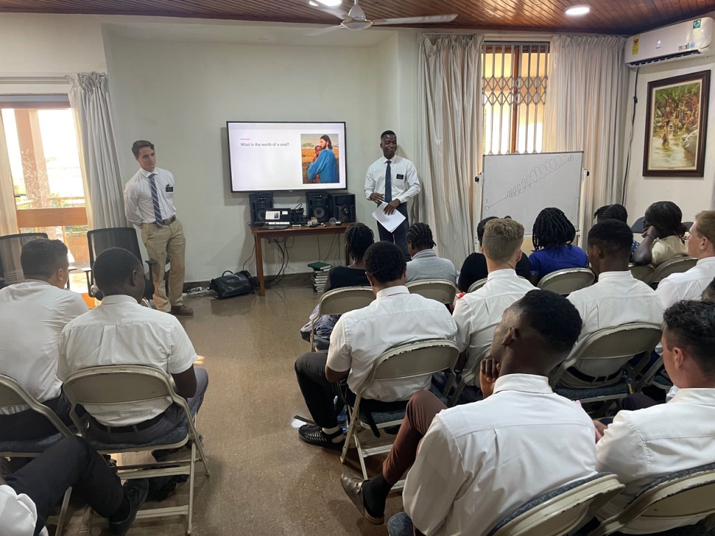 As soon as we finished orienting and training Sister Martin and Sister Lomboto, we hurried home and began a two hour session with the last 8 missionaries coming to the mission for the transfer. We had 8 Americans who came in on Friday, but had to spend the weekend in Accra so they could get their resident visa’s started on Monday and then come to us on Monday evening. That meant that LaDawn and I along with the Assistants met with them on Saturday from 4 – 6 pm and on Sunday I and the Assistants met with them from 2-4 pm. This really helped us get a ahead of the curve when they arrived on Monday. I am grateful for Elder Mba and Elder Baldwin, as they carried a big portion of the load on these calls. We are also grateful for Eric Borteye Abuyeh in Accra, who cared for the missionaries over the weekend and got them on a flight late Monday afternoon to come to us. The ability to work virtually through Zoom and Teams is a huge blessing to us and allows us to move the work forward faster than otherwise possible.