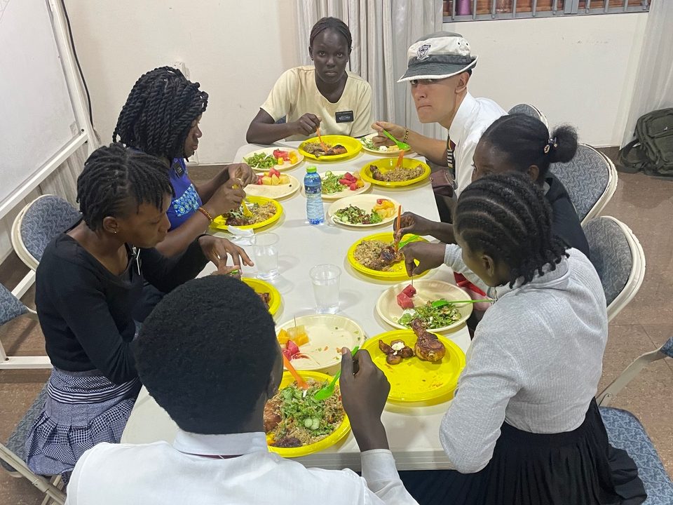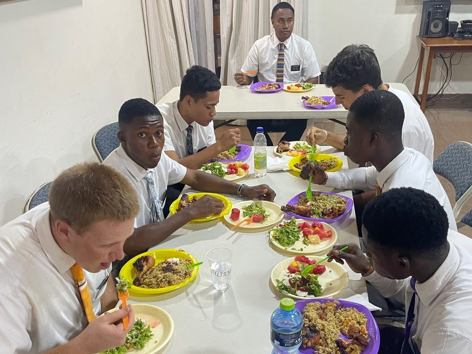 After arriving back at the mission office, we were joined by Simon Jamboe, a “volunteer missionary” from the University stake. Elder Jamboe turned 26 before he could get his papers in and so the area presidency and I worked with the missionary department to bring him in as a volunteer missionary for at least 6 months. He is an amazing young man who speaks Twi, and we are grateful to have someone of his maturity, language ability, and desire, serving in the Kumasi Mission. These 13 missionaries represent 11 different countries (Ghana, Philippines, Uganda, Zimbabwe, Samoa, DR Congo, Kenya, Nigeria, Madagascar, South Africa, and Cote d’Ivorie). We are a diverse mission for sure! We started the orientation by going over the mission vision and the contents of the Akwaaba (welcome) booklet. We finished before noon, and then had pizza from Piri Piri, always a hit with the new missionaries. We then gave them from about 12:30 – 4:00 pm to fill out paperwork, get some rest (they had been up since 2 am) and have an interview with LaDawn and me. By 4:30 pm we started our new missionary devotional on integrity and commitment (keys and bananas) and finished with plenty of time to spare for dinner which started about 5:45 pm.