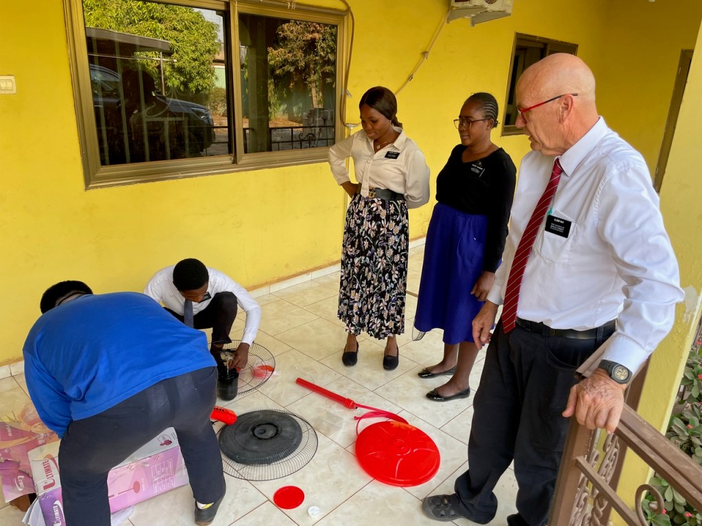I want to share just two more pictures which I believe epitomize the state of the mission currently. Both are heartwarming and inspiring. The first is a picture of Elder Mba, one of our Assistant’s, with his arm around Elder Ruzayi. I don’t know what they were discussing, but I love the way Elder Mba reached out to him in such a kind and almost “fatherly” way. The second is a picture after the Tamale zone conference. There were new fans that two of the Sisters needed to put together. Two elders volunteered (Elder Salire and his companion, Elder N’guessan). Elder Ray, our senior missionary who serves in Tamale with his amazing wife, did not do the work for them, but kept watch over them and helped them now and again with an instruction here and there so the work could progress. This is the spirit of the Ghana Kumasi Mission. Reach out and minister where ever it is needed. Work together and learn together to increase capacity, knowledge, and capability….those who know helping those who are learning and wanting to know.