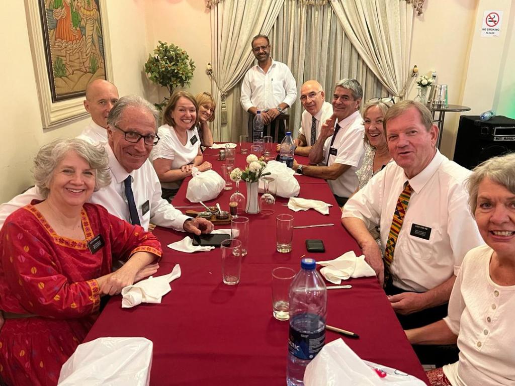 Since Wednesday had been Valentines Day, all of the couples except the Ray’s (7 hours away in Tamale) got together and went to Moti Mahal for a Valentines date night dinner on Friday evening. The best part of the meal was when the owner came out and offered us free desserts. Gulab Jamun (Indian Milk Balls) and some berry nut ice cream that they make on premise were the desserts he brought out. Delicious! We took a picture with the owner at the head of the table.