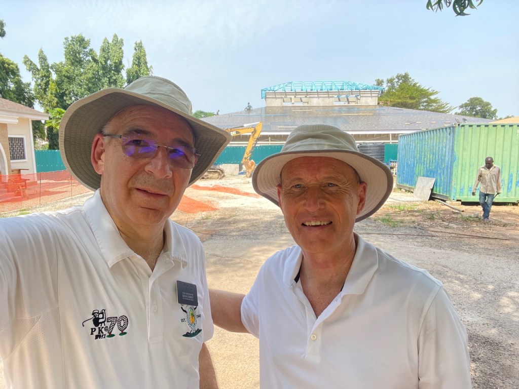 I will now go back to Monday, March 11th. Monday morning early, Elder Pack and I played golf. We had a couple of rains during the week and a pretty decent downpour on Sunday. The result was a beautiful green golf course on Monday morning on which to play. They are building a first class club house which you can see behind the two of us.