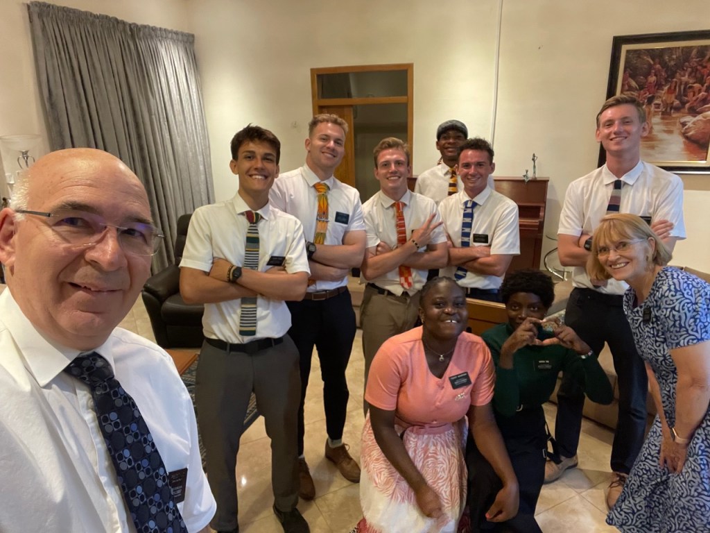 On Tuesday, we had a nice delicious dinner from Aboude’s at the Mission Home with the 8 missionaries departing. Following dinner, we had a round or two of Preach My Gospel Jeopardy and then spent 45 minutes discussing questions, giving important “life skill” counsel, and taking some pictures. We are grateful for these young missionaries who have grown so much over the course of their service.