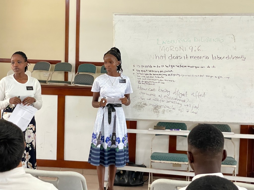 Following the Vision refresh, the Sister Training Leaders provided a 30 minute instruction on a topic of choice out of Preach My Gospel. The three topics selected were: 1) Laboring Diligently. 2) My Soul Delighteth in the Scriptures. 3) Unity with Members. All three were done well.
