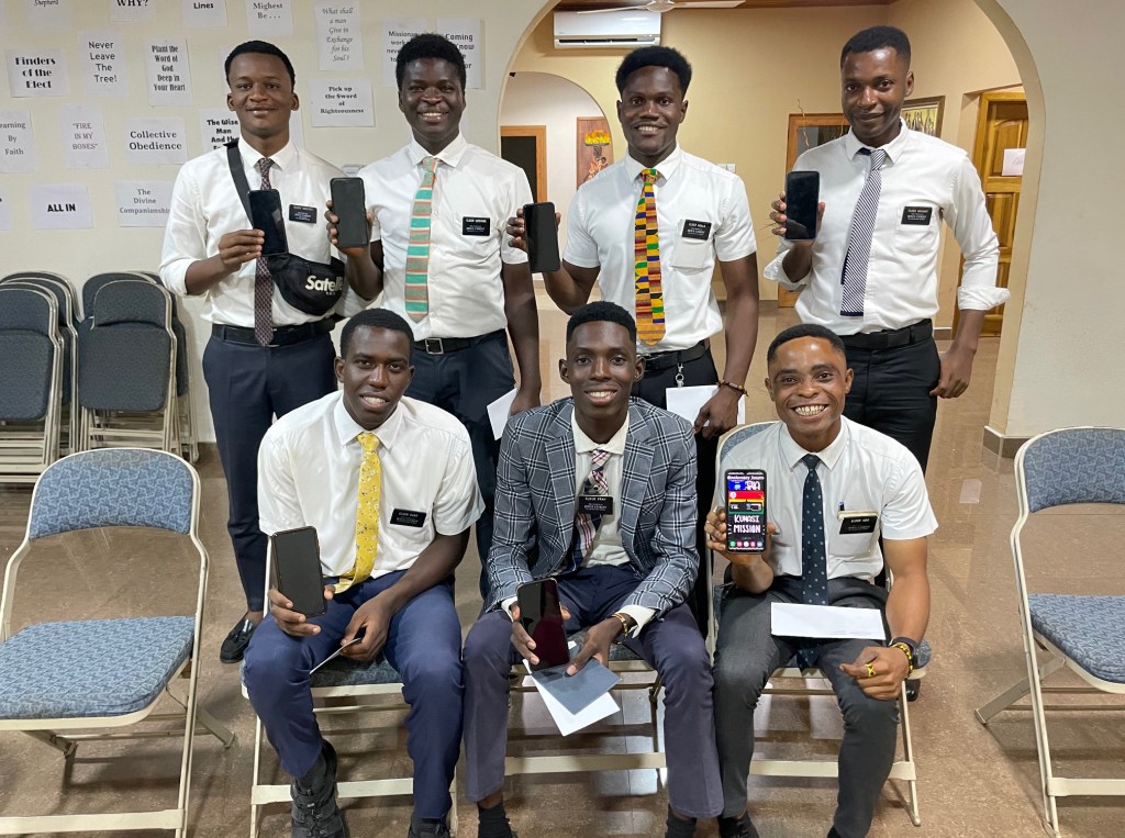 That is the inspiration for the title of this weeks blog post. Last week was our 25th transfer (at least the majority of it – as we have 5 more missionaries coming in 2 weeks). Our mission was selected as a pilot mission to send mission phones home with the missionaries. These are the phones they have been using throughout their mission. We are working through the process of how best to do this as it requires the removal of the Church security software called MAS 360. Here is a picture of the 7 missionaries who went home last month shortly after finding out that they would be able to take their phones home with them. The concept here is to help these young missionaries get a good start after they go home, knowing that a good smartphone can help them enroll and succeed in BYU Pathway Connect. Once we have completed the pilot, then it will be rolled out to the entire Africa West Area … and perhaps even further. It is an exciting development and will really help these returning missionaries succeed in the next phase of their life, especially as they pursue education. So now missionaries will get to take their PHONE HOME.