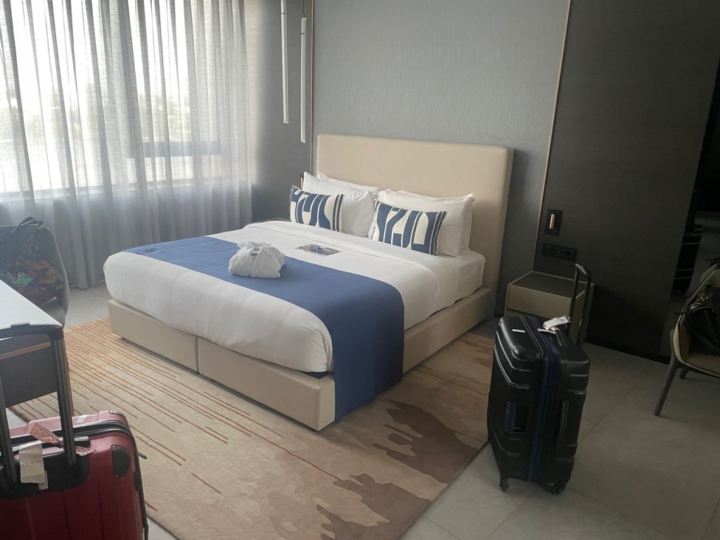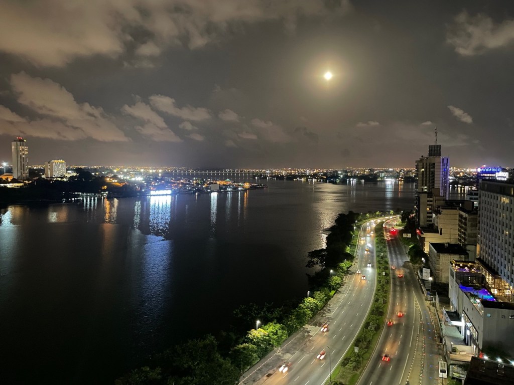 On Wednesday, we flew to Abidjan on an Emirates flight that left around 12:30 pm. It is only a one hour flight so it was a quick “up and down”. Our Mission Leader Seminar was held in the Noom Hotel right on the waterfront in Abidjan. We were on the 17th floor in a suite and the view from our balcony was exceptional. I failed to snap a picture of the “living room”, but did get one of the kitchen and bedroom below. Cote d’Ivoire built three football stadiums as they hosted the Africa Cup. Although they were not expected to win, they came away with the championship trophy in a game against Nigeria. Now these stadiums will forever be a memorial to their 2024 Africa Cup win.