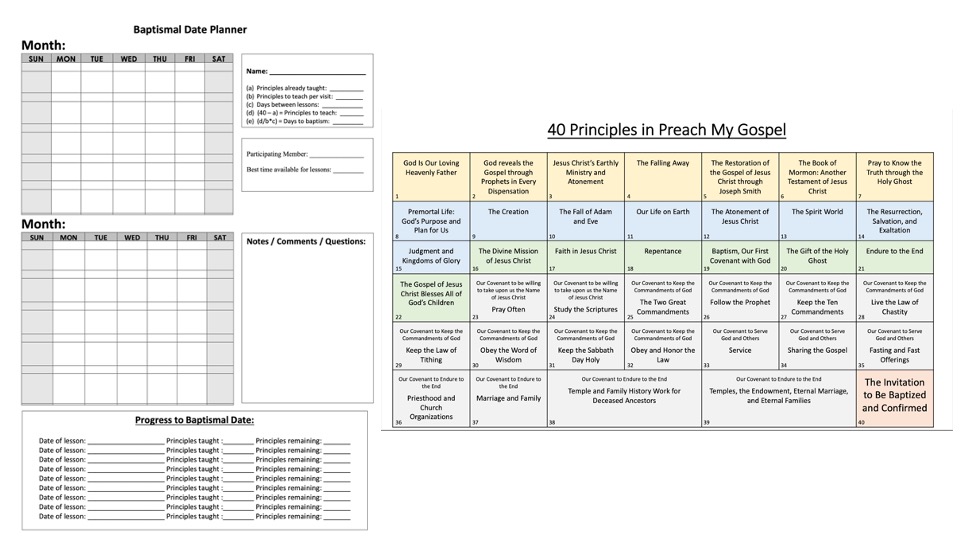 The Assistant’s instruction was on how to baptize those we put on date. For the role play, we practiced filling out the Baptismal calendar. This form allows us to plan with those we are teaching in the selection of a baptismal date. By knowing the principles that need to be taught prior to baptism, the investigator becomes much more motivated to give the missionaries the needed time to teach them. The 40 principles are on the back of the planner and can be checked off as they progress. The size is one half of an A4 sheet of paper. We think this can be another game changer. We will go over this our upcoming zone conferences as well.