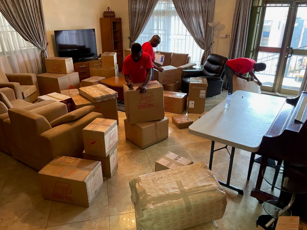 Monday, June 3rd was a busy day for us. The packers were to arrive the next morning and so we needed to go through the entire house and make sure we had gathered everything that would be shipped back to the USA. Our plan was to move out of the Mission Home on Wednesday, so that the Facilities group could begin the work on painting and redoing the two bathrooms for the Boateng’s two children who would be coming with them. It took us a lot longer to get everything gathered, sorted, and organized than we had hoped. Part of that was cleaning along the way, of which LaDawn did the majority. We decided to bring everything into the living room so it would be easy for them to pack it all up. We had less than half of what was allowed and we are taking very little home with us that we did not bring.