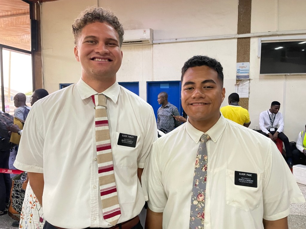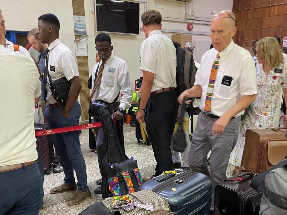 Wednesday started early as we were at the Mission Office at 5:30 am. There was some confusion with our mission driver’s schedule, so we ended up driving the van with the 8 missionaries and Elder and Sister Pack drove our Fortuner. It was half way to the airport when we realized we could have put the Pack’s in the van as well. The Office Elders drove their truck to bring the luggage. We managed to get everyone onto the flight on time and then we left the van at the airport and drove our car back to the Mission Home. (Elder Loveland brought Alex Cobbina back to the airport later in the day to retrieve it). It appears that the new terminal has been commissioned and is ready to open any day, but the politicians are reportedly waiting for the optimal time to get the most votes out of the new airport. We have grown accustomed to this small, but functional terminal. Unique in this group of returning missionaries was Elder Farley from Hawaii and Elder Page from Alaska.