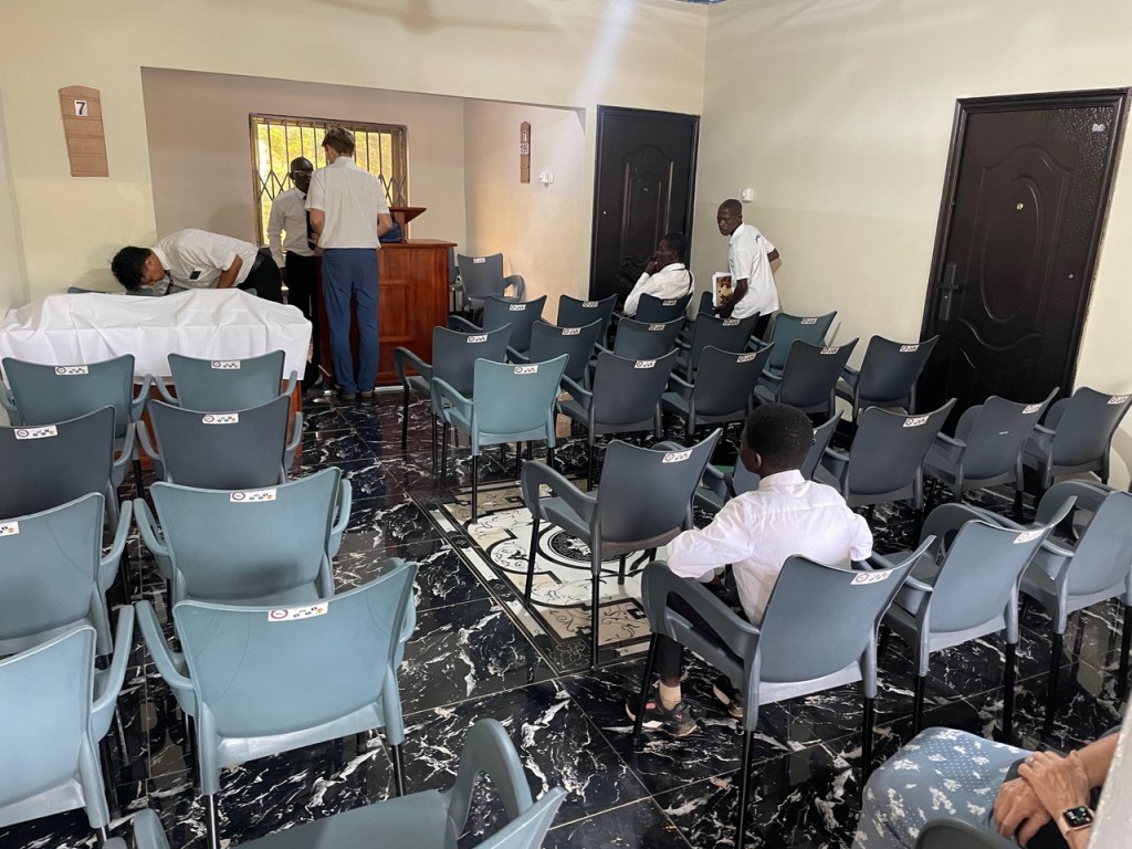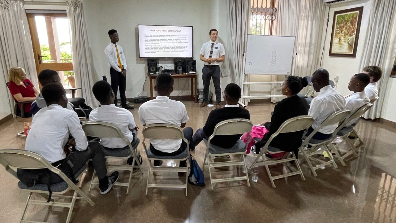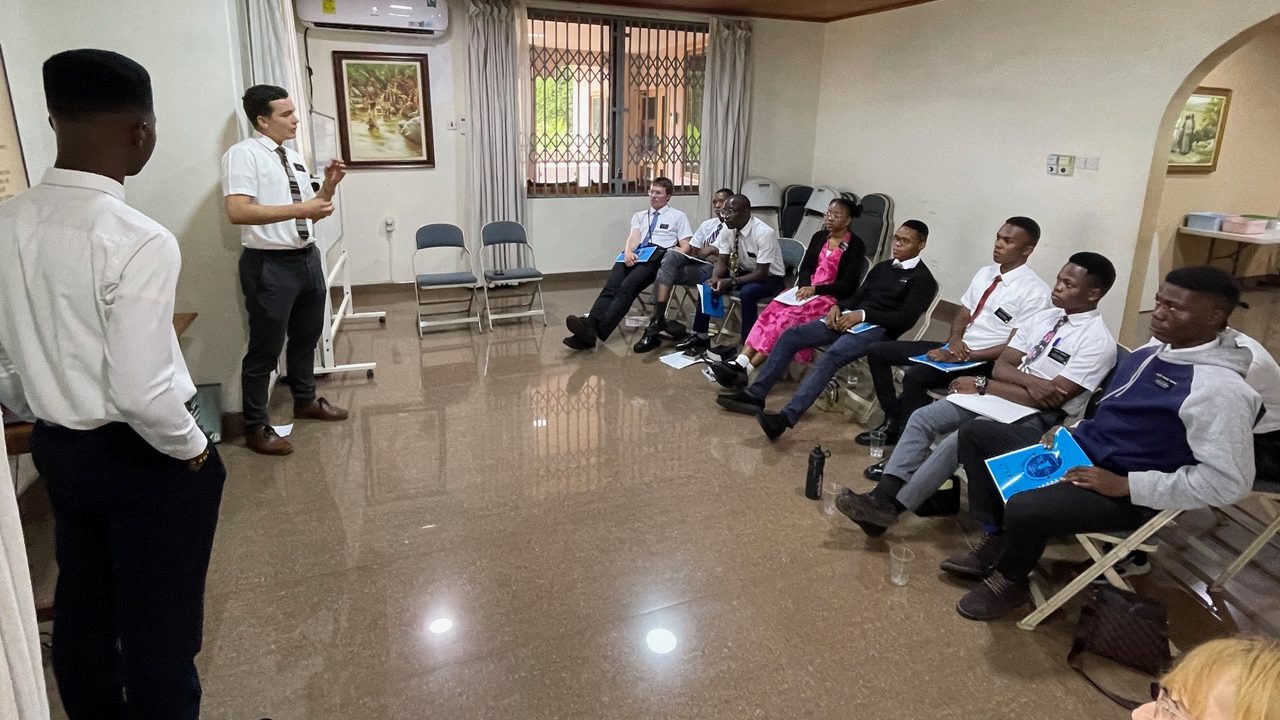 On Friday morning, all but two of the trainers joined the new missionaries in the Mission Office (the other two were on Zoom since they were in Tamale and Bolgatanga). I spent a few minutes asking the question of the trainers, “In this mission, we _________________”. The trainers were invited to fill in the blank. This was a way to help the new missionaries get a feel for the culture directly from other missionaries without any prompting from me or the Assistants. Elder Togba Jr and Elder Reynolds then went over the 12 week training program and what it means to become Finders of the Elect.