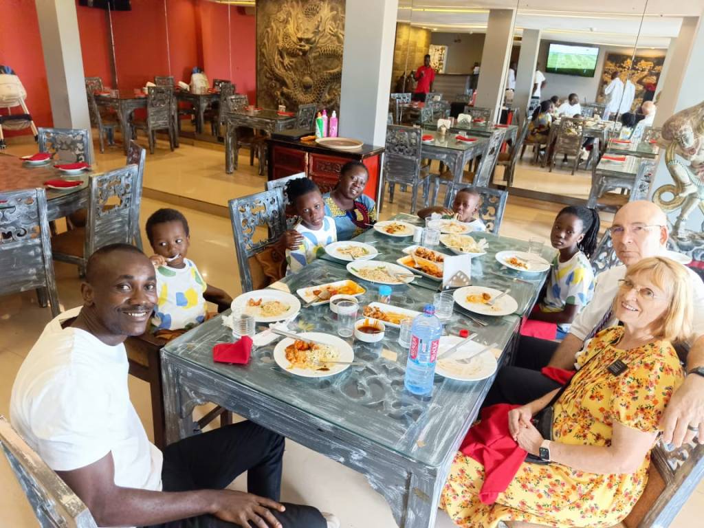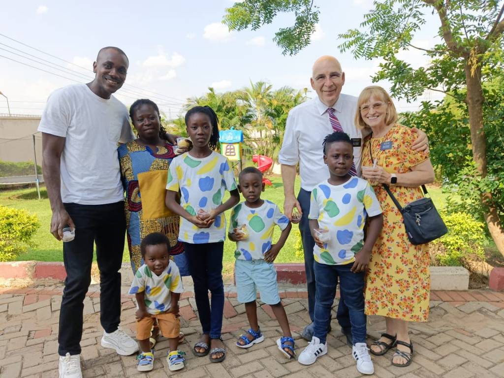 On Saturday, I worked on the weekly letter to the missionaries and LaDawn worked on a transition document for Sister Boateng. She also spent time on phone checks. At 1:30 pm, we left the apartment and met Thomas and Rebecca Tabi for “Linner” at Noble House. They brought their four beautiful children as well: Ryanne, Hyrum, Mitchell, JahReal. We had a delightful meal together and then enjoyed a scoop of Pinocchio’s ice cream afterwards. This is a great family and we will miss our associated with them. President Tabi served as my counselor for the first year after our arrival. He then became the president of the Obuasi District where he continues to make a difference.