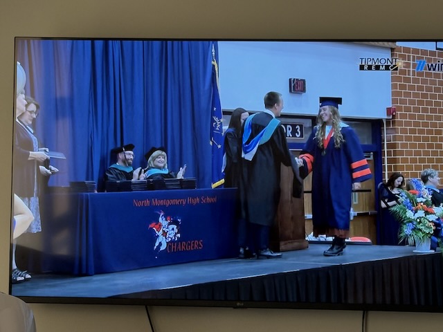 I would be remiss if I did not give a shoutout to our second oldest granddaughter, Hailey Anne Kunz who graduated from North Montgomery High School in Crawfordsville, Indiana on Saturday the 24th. We were able to watch her graduation on-line and snap a picture as she walked across the stage. Her two younger sisters, Brooke and Kaitlin played in the band and we caught a picture of them as well. Hailey will be attending BYU in Provo this fall. We are so proud of her!