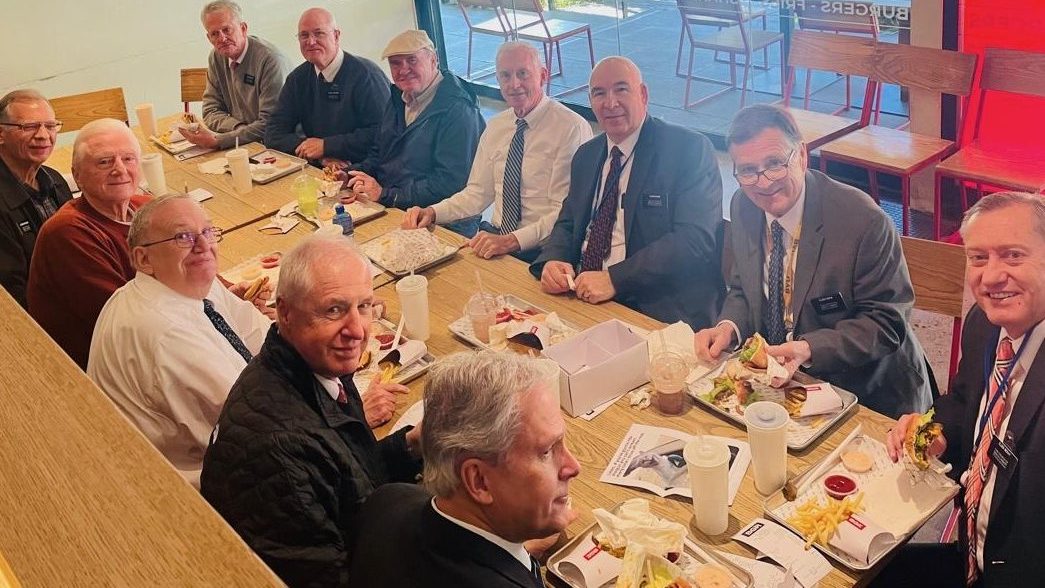 On Monday, July 7th, many of the senior missionary elders went to lunch at BGR (think 5-Guys without the peanuts) to celebrate those having July birthdays. Here is a picture of the amazing men who attended!