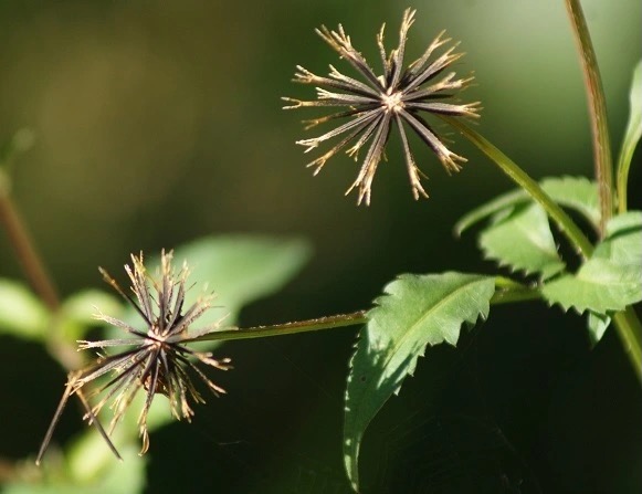 “Blackjack originated from South America and is common in all tropical and subtropical areas of the world. It is recorded as a weed in cultivated land and used as vegetable or pot herb in many African countries such as Kenya, the Congo, Botswana, Zambia, Zimbabwe, South Africa and Mozambique. The plant is distributed throughout tropic Africa. It is a common, wide-spread and extremely troublesome weed, being found in most disturbed areas.” Reading further, the tender leaves of a young plan are used as a leaf vegetable. They apparently have a high food value although the taste is reported to be somewhat “sharp” or “astringent”. The document goes on to discuss the medicinal value of the plant. “Backjack is used as a medicinal plant in many regions of Africa. Roots, leaves and seed have been reported to possess antiseptic and anti-inflammatory properties. Decoctions of powered leaves are reported to be helpful in treating many ailments such as arthritis, abdominal trouble, headache, diarrhea, etc.” As can be seen in the picture above, “The fruit of the blackjack is unpleasant, hairy and able to penetrate rapidly through several layers of clothing. It has a dry, pronged fruitlet with hooks.” The “fruit” also contains the seeds. They are “small, black and slender with little claws on one end. The seeds can stick to clothes or to animals’ fur.” The seeds are 1/4 – 1/2 inches long with stiff, barbed bristles. I find it extremely interesting that to some this is a weed, and to others, it is a valuable food and medical resource. Ah, the wonders of our God!