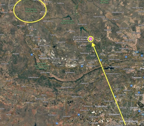 As if our Monday experience wasn’t enough, Elder and Sister Cooper, assigned to the Communications team here in Africa South Area, invited us on Saturday to “do something fun” with them. We ended up spending the morning to late afternoon enjoying a visit to Ukutula Lodge and Game Reserve. This was a bit closer to Johannesburg, taking us just under 2 hours to get there. It is in the same general direction as Pilanesberg, but not as far as you can see on this map.