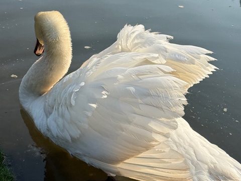 A week or so ago on our Friday golf outing, I couldn’t help but take a couple of pictures of unique events. The first happened on the 9th hole when I hit my ball just a few inches into the water. I knelt down and pulled it out of the water and as soon as I did this, this huge swan swam over to make sure I was clear that this was his/her territory and not mine. The second picture is of a group of men who were trying to dig out a stump in the parking lot at the Golf Club. I was thinking, “Man, they really could use my stump grinder about now.” I am sure they would have agreed!