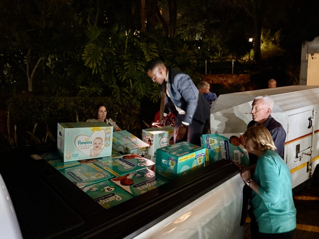 On September 5th, quite a few senior couples gathered at the Area Office to assist the Nielsen’s (they work in Welfare and Self Reliance) who where packing supplies into trucks and trailers to take to a service project where Sister Porter (General Primary President) would be working with the primary the following Sunday to prepare humanitarian bags for families in need. We loaded up a LOT of diapers!