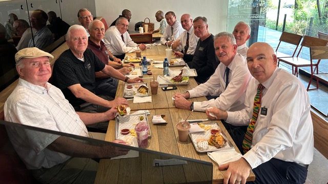 The first Monday of every month is the day that the senior missionaries get together and go out for lunch. For the men, it is always BGR, which is an excellent burger place. I have mentioned this before. The Sisters went to Olive and Plate. Here is evidence of the fellowship and fun.