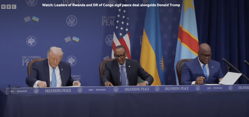 On December 4, 2025, Presidents Félix Tshisekedi (DRC) and Paul Kagame (Rwanda) formally ratified a U.S.-facilitated peace package in Washington D.C. The ceremony was attended by and championed by President Trump.